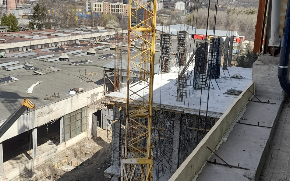 5 поверх Бізнес Центру — розпочали монолітні роботи з перекриття поверху. Завершальний етап роботи над дахом Бізнес Центру