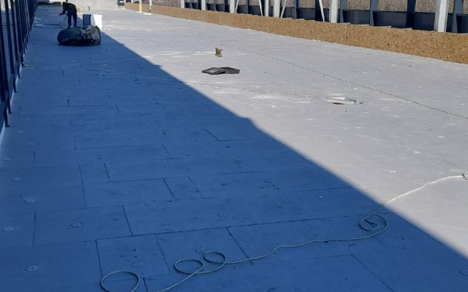 Початок робіт з перекриття даху, а саме частини Бізнес Центру. Провели роботи зі скління вхідної сходинкової групи ТРЦ.