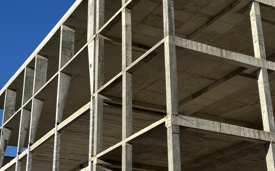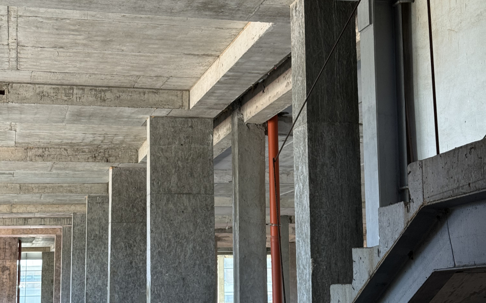 П’ятий поверх бізнес центру: стяжка підлоги, встановлення та укріплення бетонних колон.