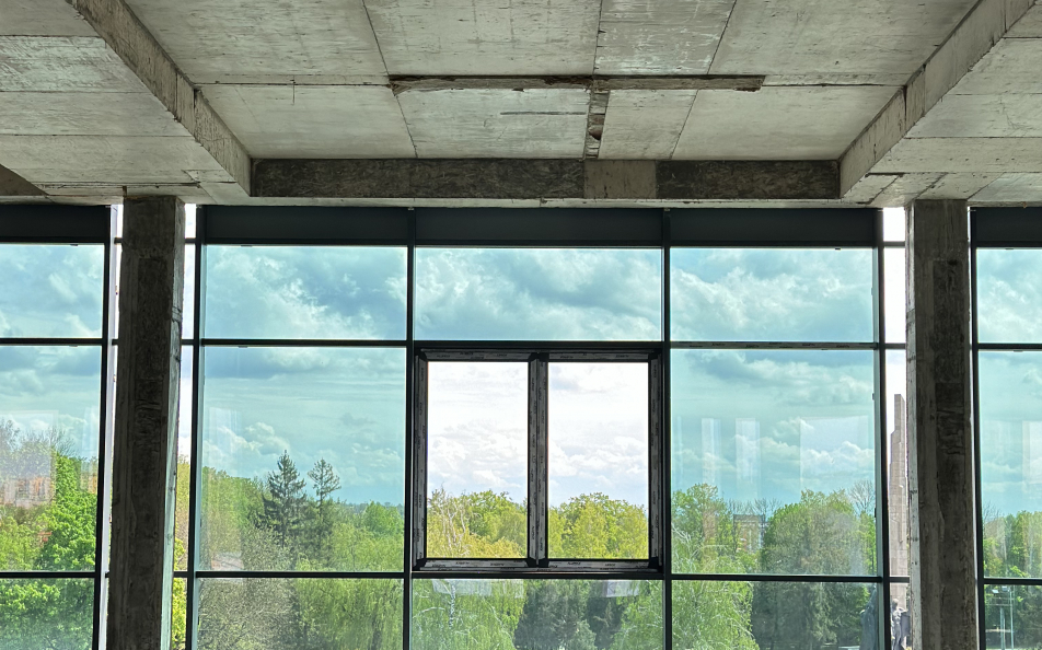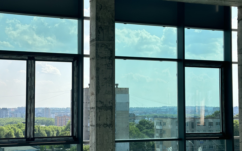 Завершили першу частину встановлення обрешіток під скління в частині Бізнес Центру.