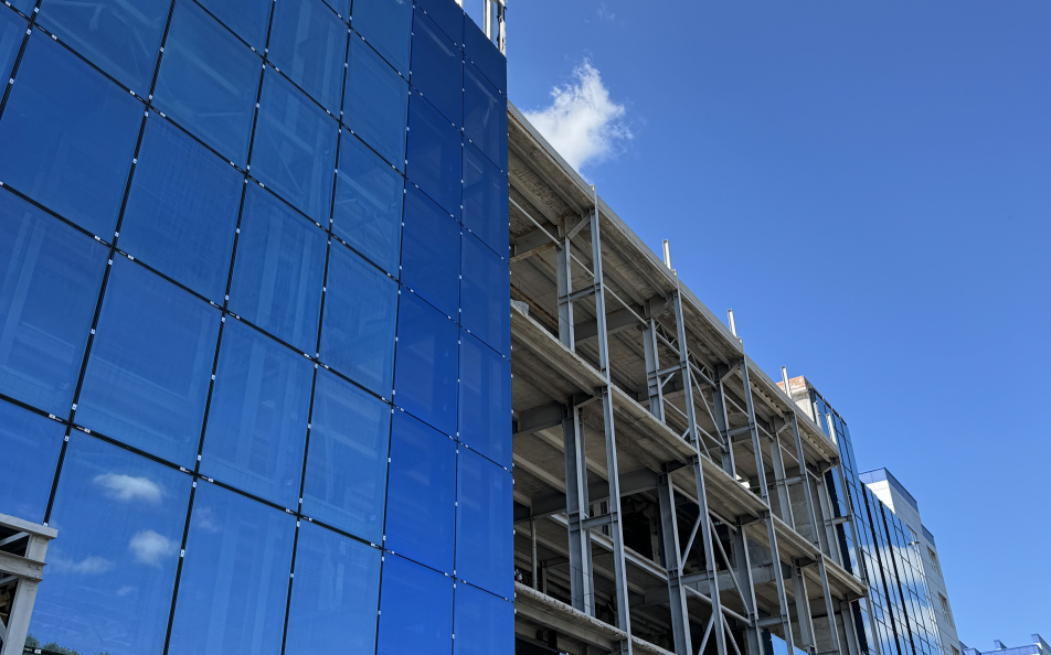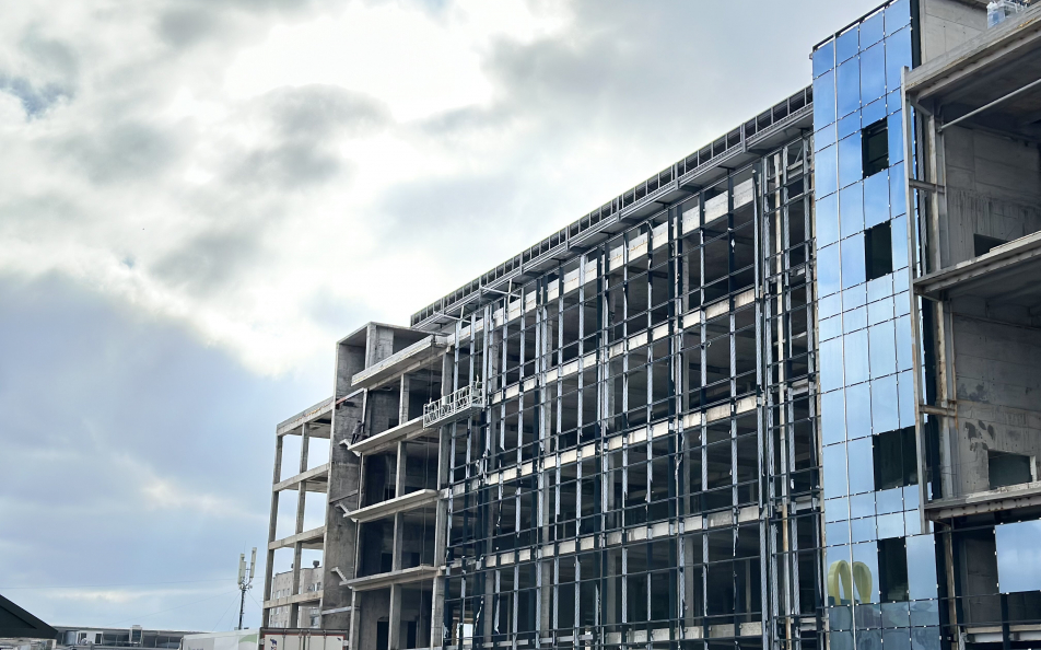 Завершили першу частину встановлення обрешіток під скління в частині Бізнес Центру.