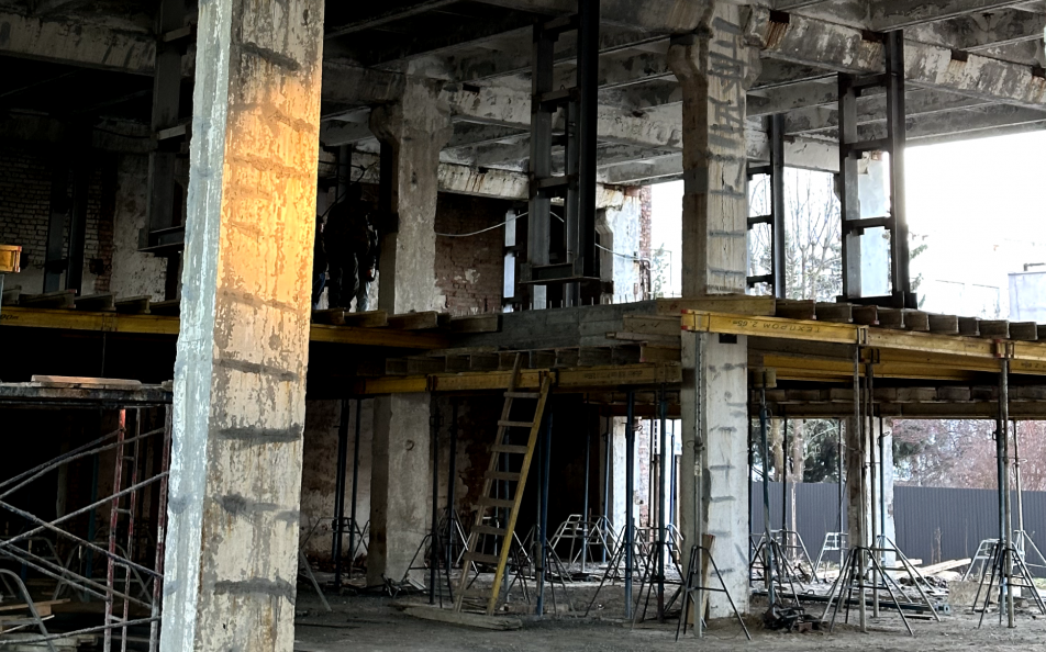 Продовжуються активні роботи з будівництва напівповерху всередині комплексу