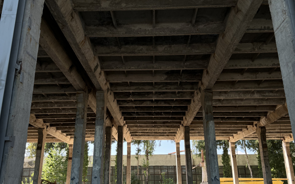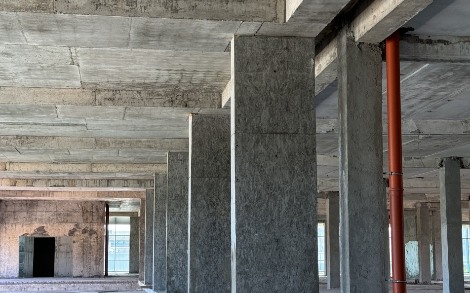 П’ятий поверх бізнес центру: стяжка підлоги, встановлення та укріплення бетонних колон.