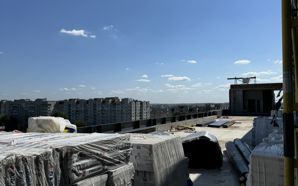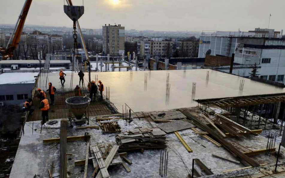 5 поверх Бізнес Центру — розпочали монолітні роботи з перекриття поверху. Завершальний етап роботи над дахом Бізнес Центру
