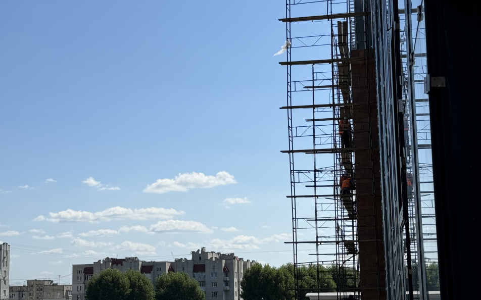 Фасадні роботи не припиняються ані на хвилину навіть у липневу спеку